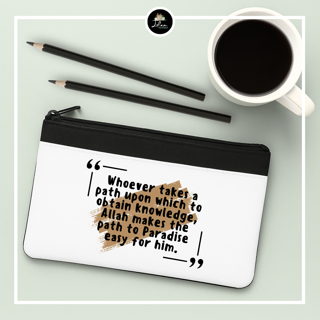 Black pencil case measuring 20 x 12 cm, for storing stationery and other small accessories.