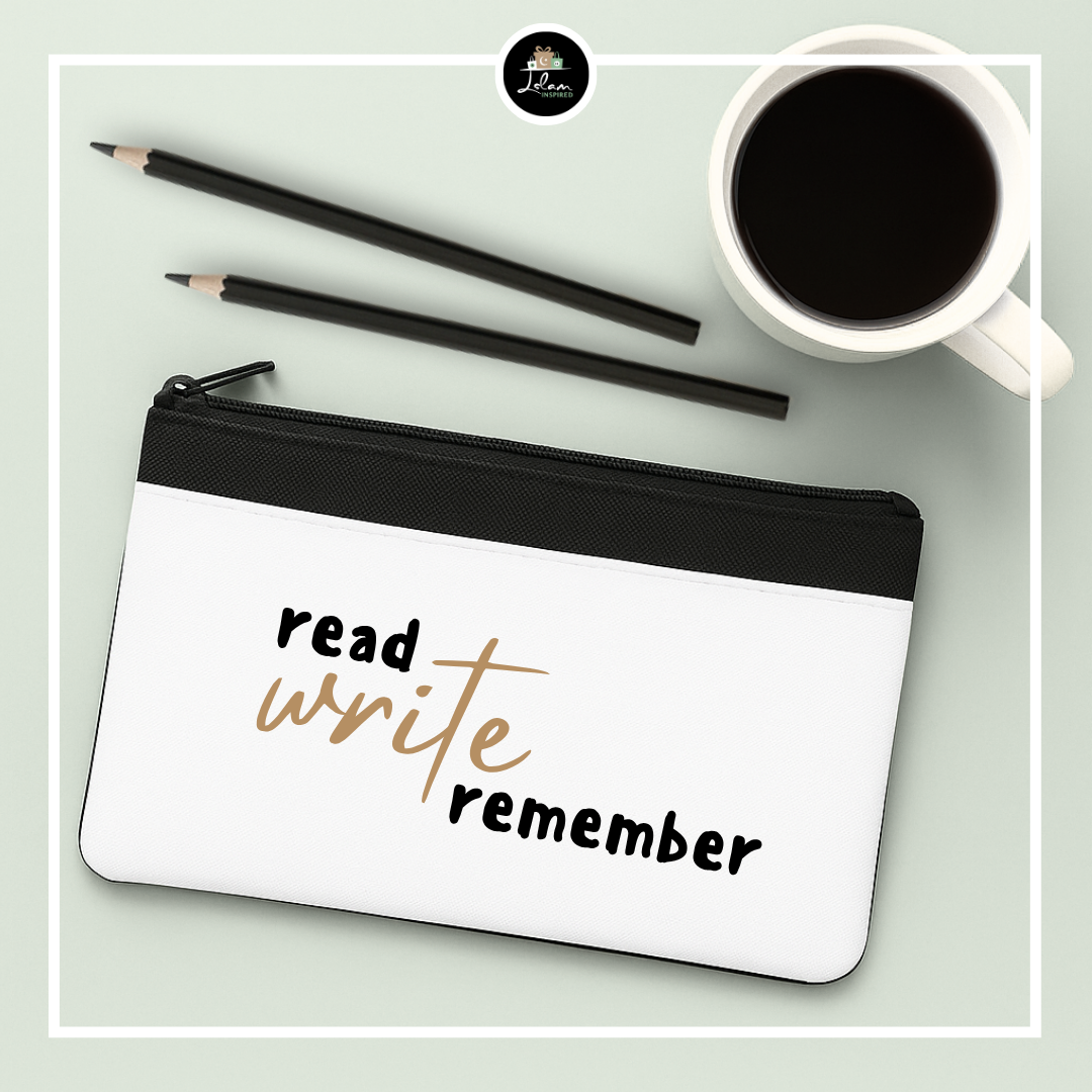 Black pencil case measuring 20 x 12 cm, for storing stationery and other small accessories.