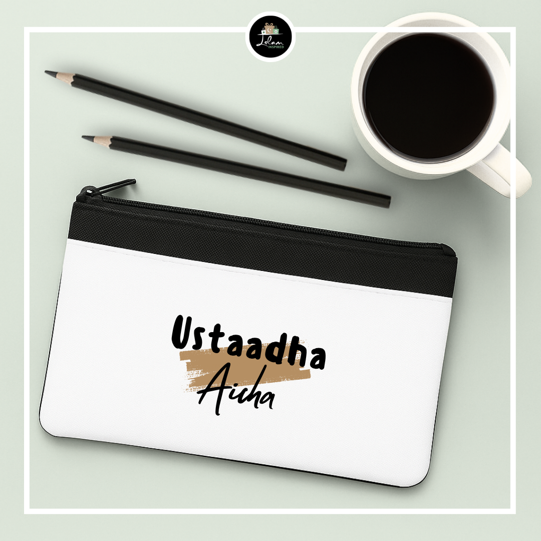 Black pencil case measuring 20 x 12 cm, for storing stationery and other small accessories.