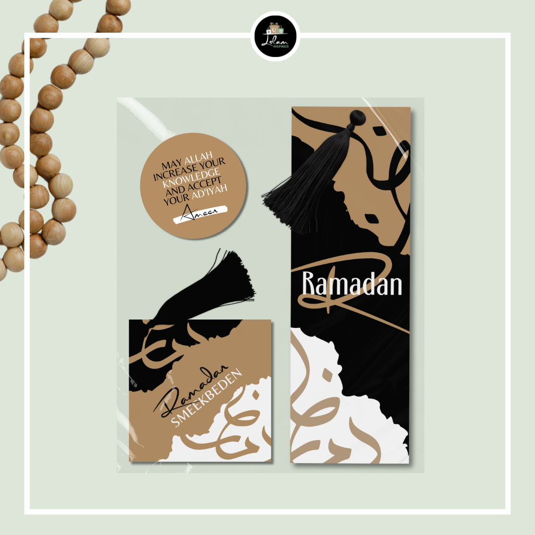 The dua booklet and bookmark are supplied in transparent gift wrap, finished with a dua sticker.