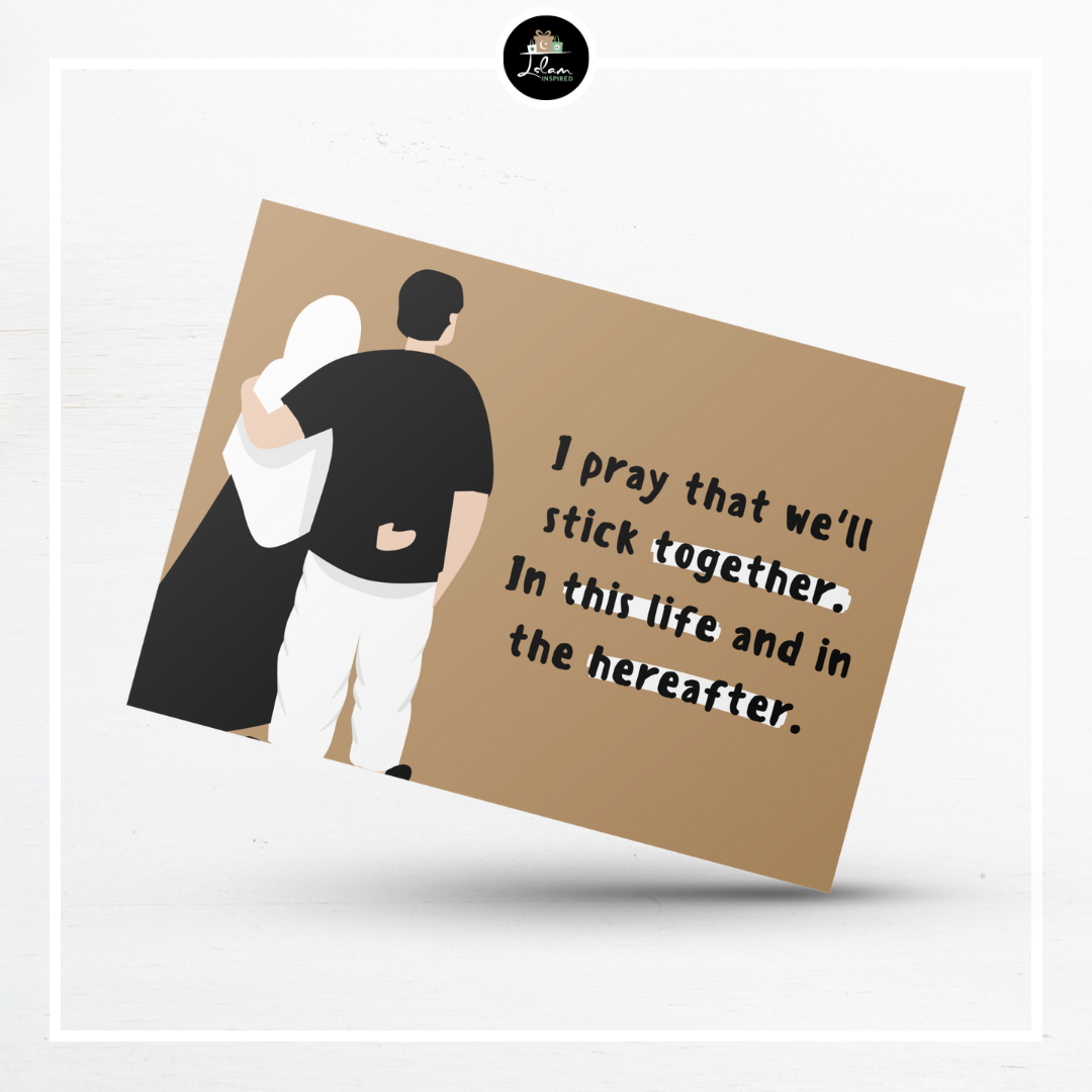 Wenskaart 'I pray that we'll stick together' voor een koppel
