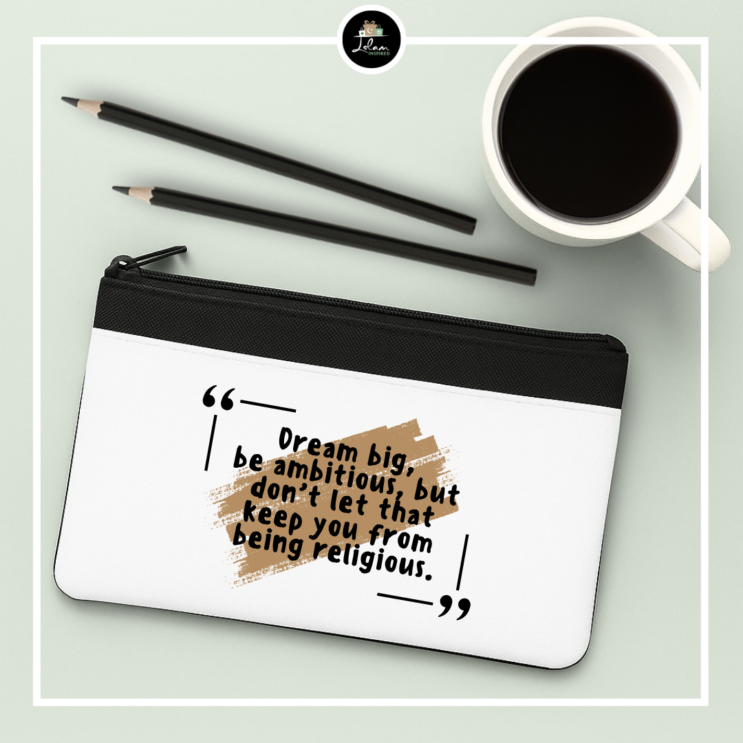 Etui van 21 x 12 cm groot, om schrijfwaren en andere kleine accessoires in te bewaren.