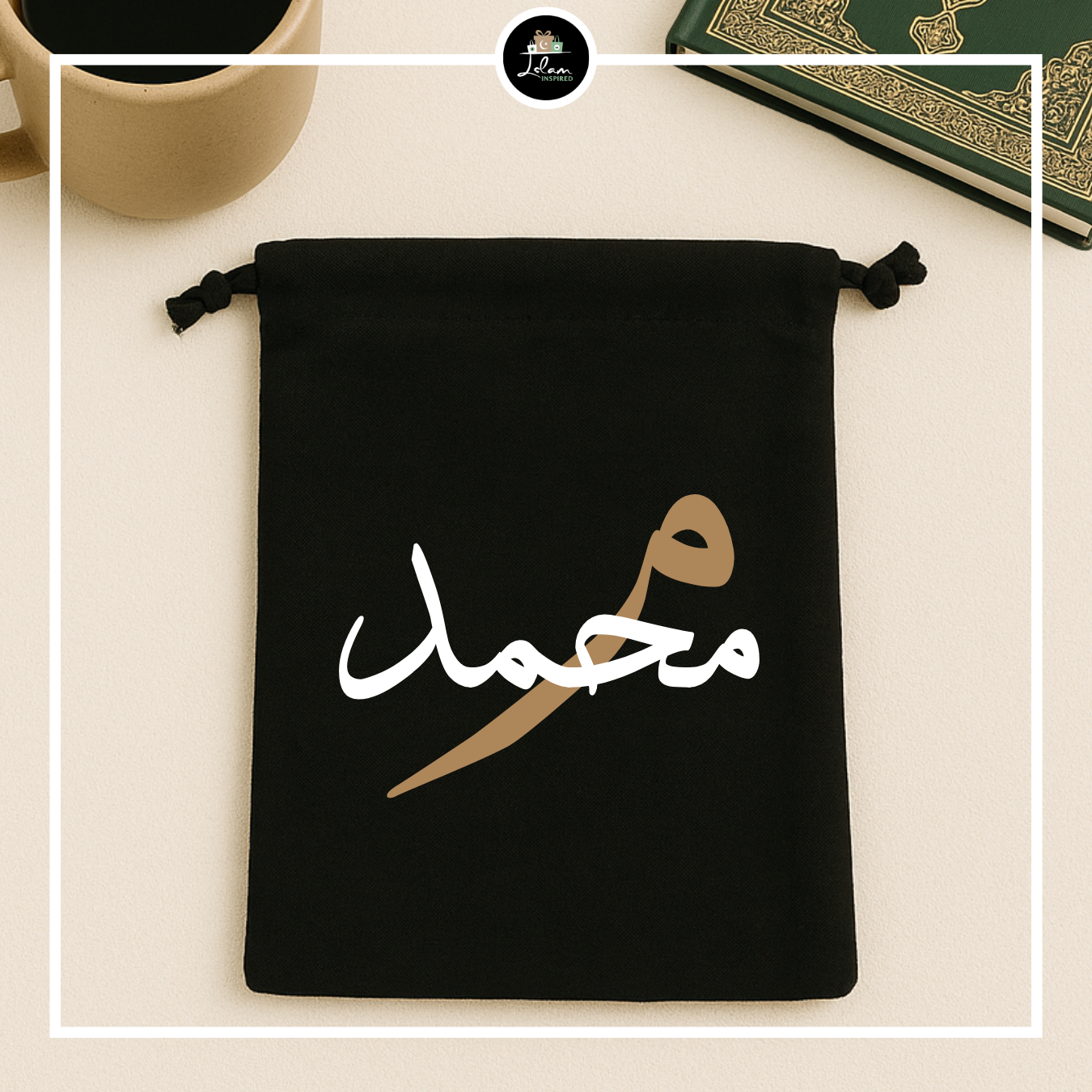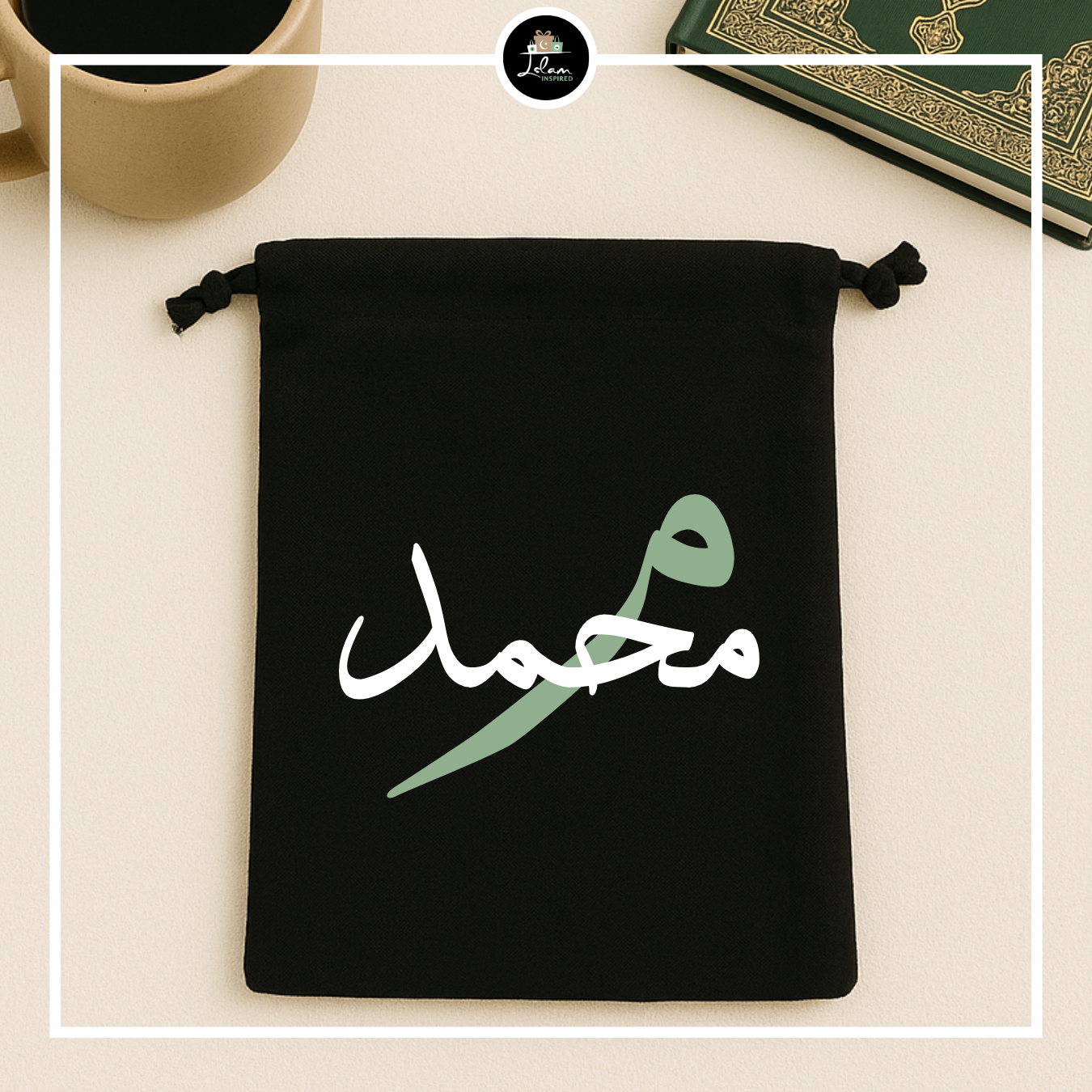 Een zwart katoenen beschermtasje van 30x25cm voor jouw Quran en andere boeken. Voorzien van een trekkoordje.