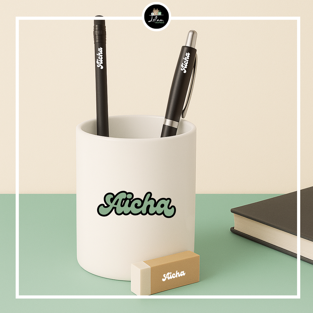 Gepersonaliseerde pennenhouder in de stijl van onze Gen Z & Gen Alpha collectie.