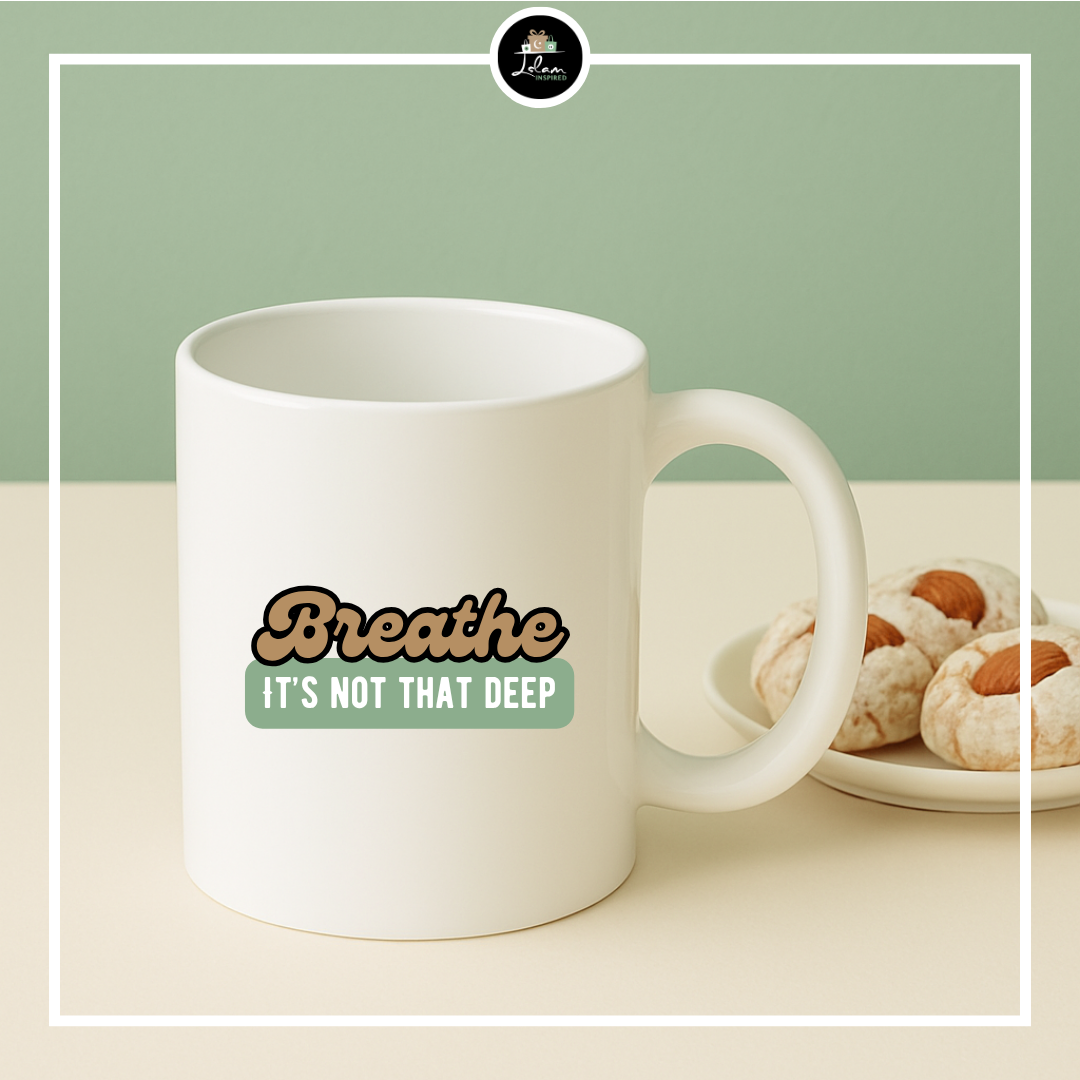 Deze mok bevat een veelgehoorde uitspraak onder GenZ'ers. Het betekenis zoveel als: 'Rustig, het is niet zo erg'.