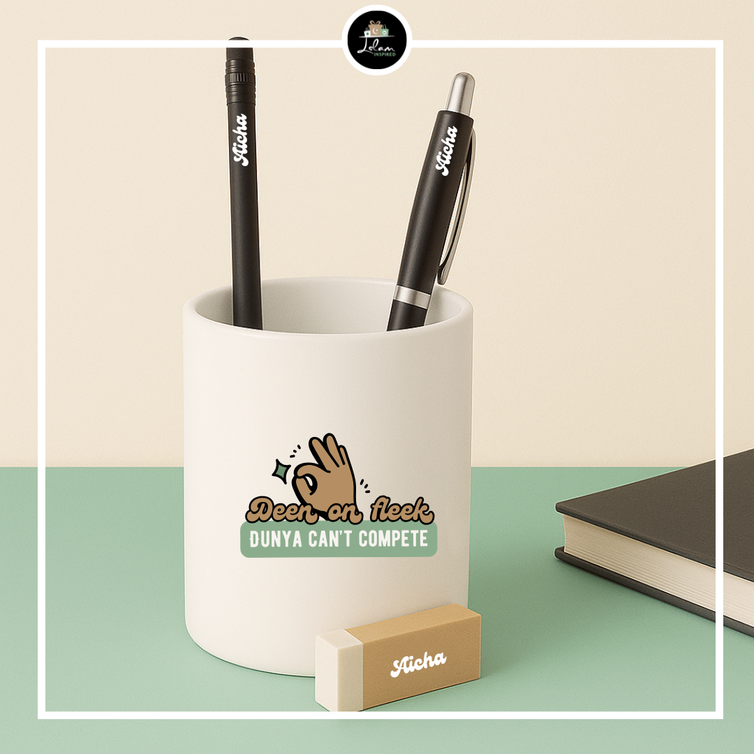 Deze Gen Z & Gen Alpha etui is bedoeld om tieners en pubers eraan te herinneren dat ze steeds deen (geloof) boven dunya (deze wereld) moeten plaatsen.