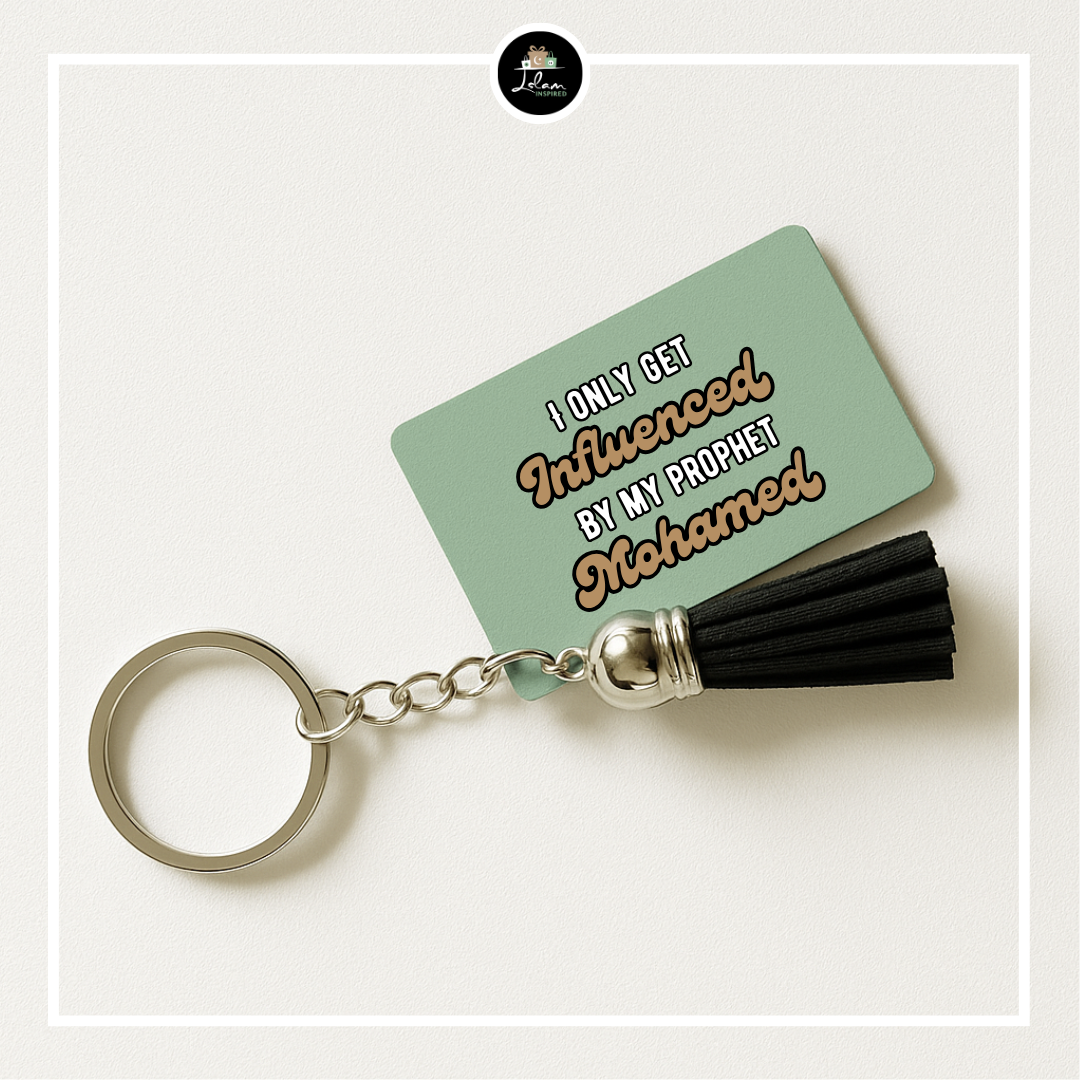 Sleutelhanger met de tekst 'I only get influenced by my prophet Mohamed'