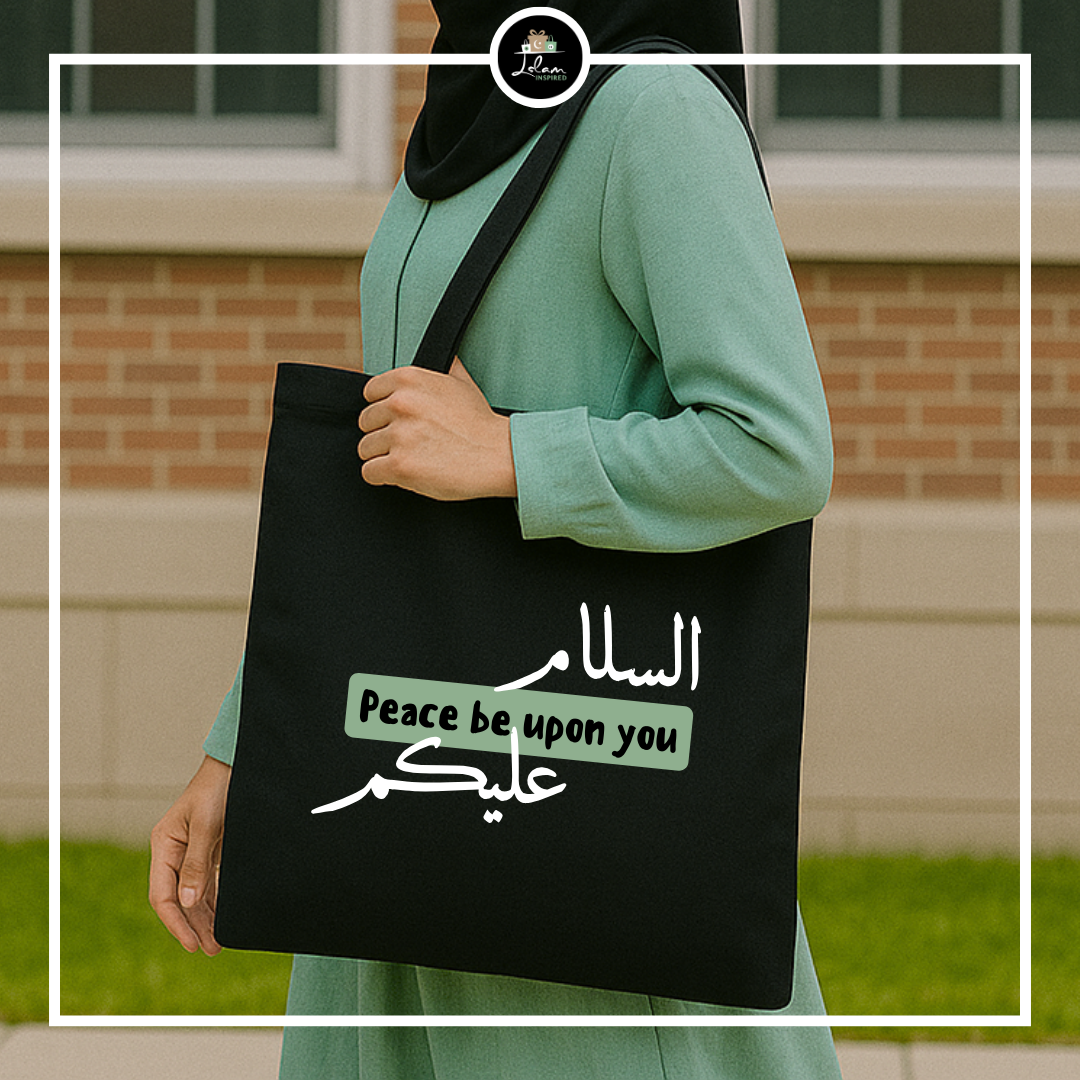 Een comfortabele totebag (38x40cm), makkelijk over de schouder te dragen en tegelijkertijd een leuke manier om aan dawah te doen.